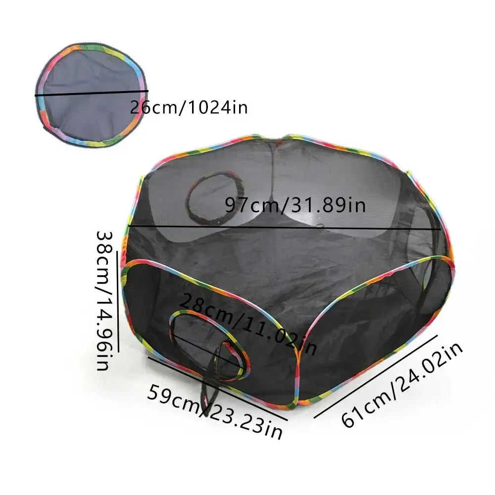 L'installation ne pourrait pas ĂȘtre plus simple. La structure auto-dĂ©ployant se dĂ©plie instantanĂ©ment quand vous la sortez de son sac de rangement. Plus besoin d'outils ni de notice compliquĂ©eâŻ! Les tunnels se dĂ©ploient comme par magie, et les connexions se font par simple pression.